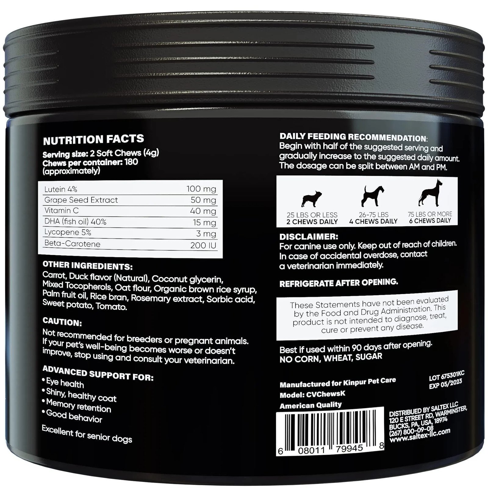 - great for all: clear eye chews for dogs help pups of any age & breed. they can be especially beneficial for senior dogs to support their eyesight. moreover, they’re easy to chew & have a tasty duck flavor.
