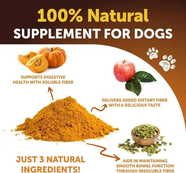 - pumpkin powder for dogs: elevates digestive wellness, assuages digestive discomforts including diarrhea, constipation, and upset stomachs, while attending to anal gland matters